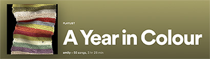 I've also made a playlist of these songs in the order by which the knitted calander follows. You can listen to "A Year in Colour" here on Spotify